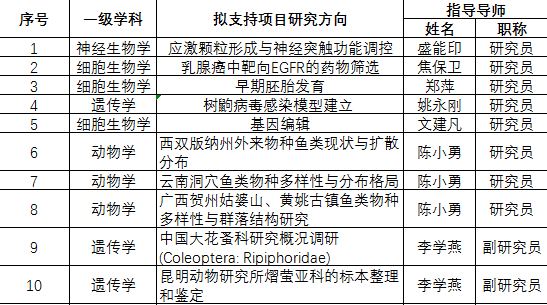 中国科学院昆明动物研究所2021年度大学生创新实践训练计划报名通知