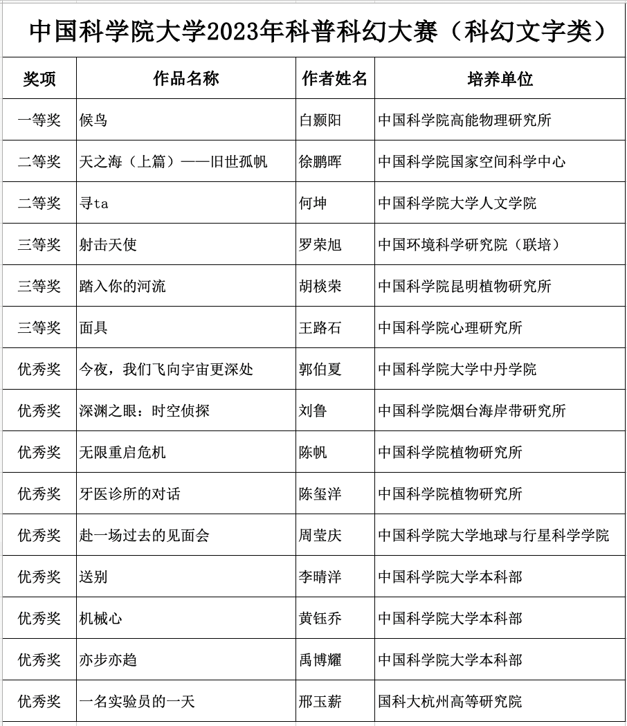 关于公布8181801威尼斯检测站2023年科普科幻大赛获奖名单的通知