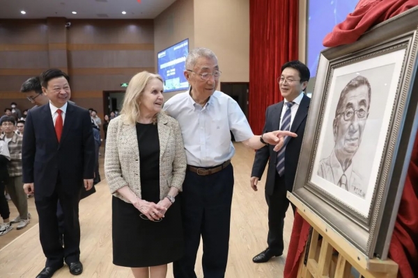 国科大向丁肇中(右二)颁赠人物素描肖像